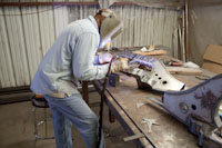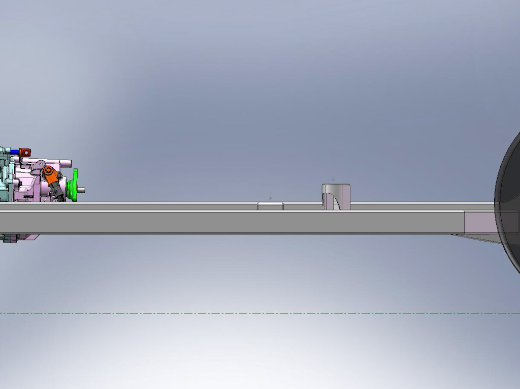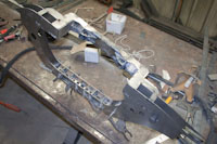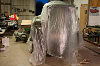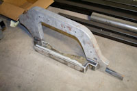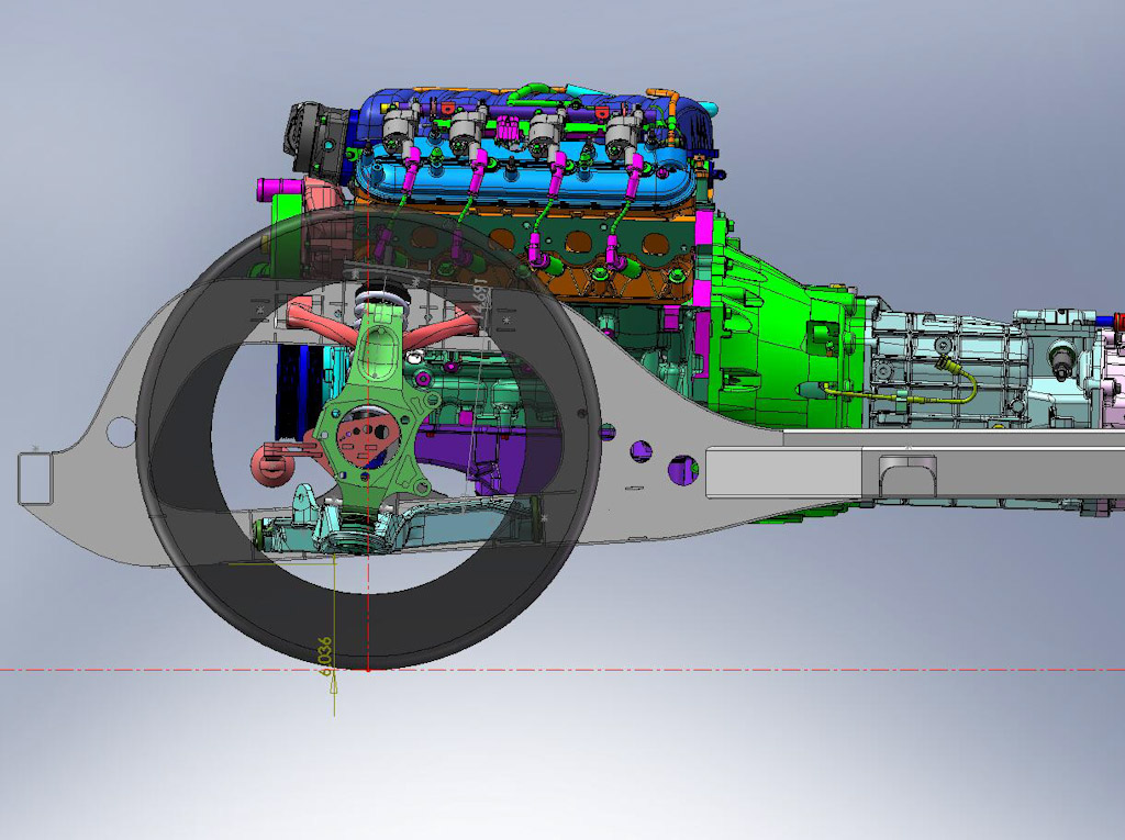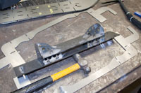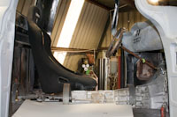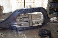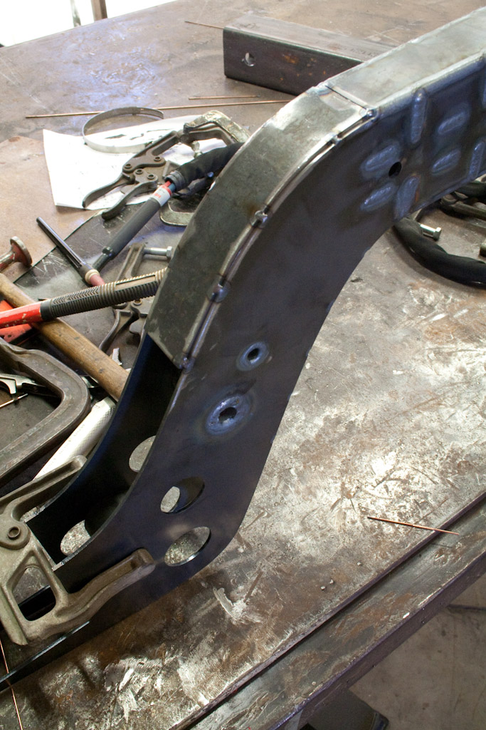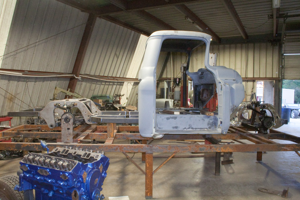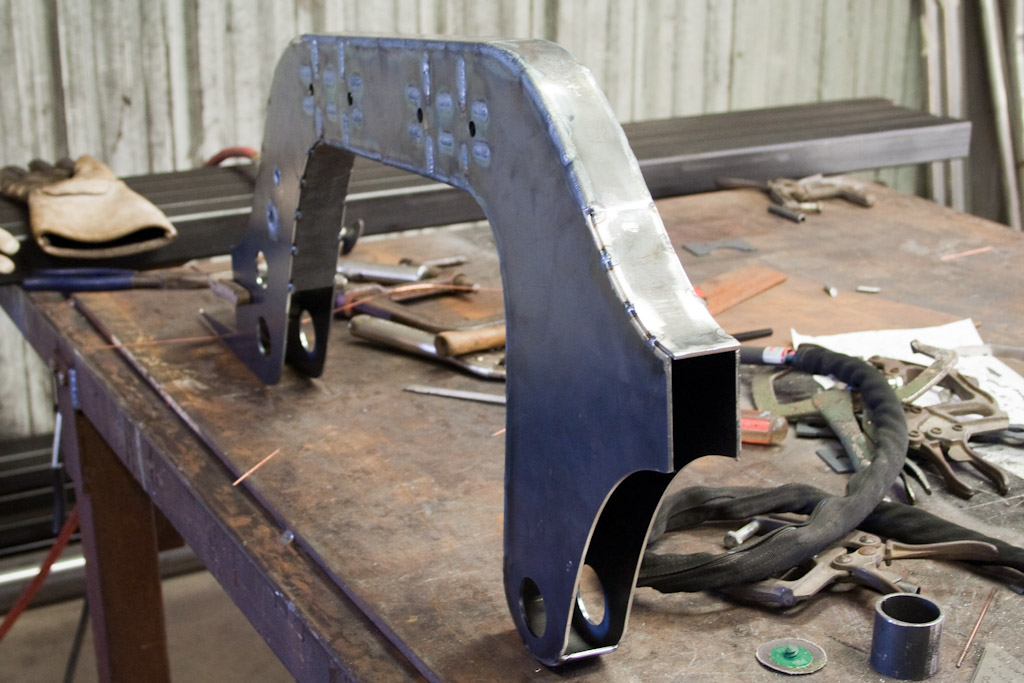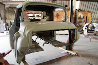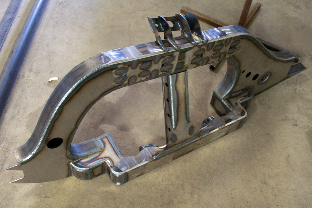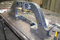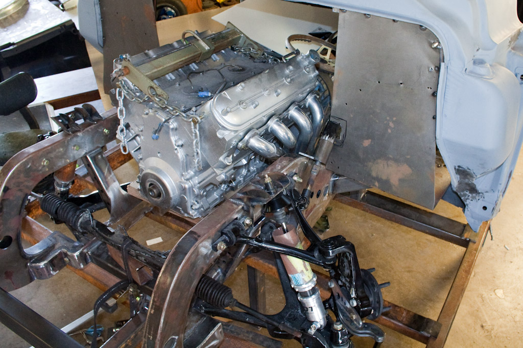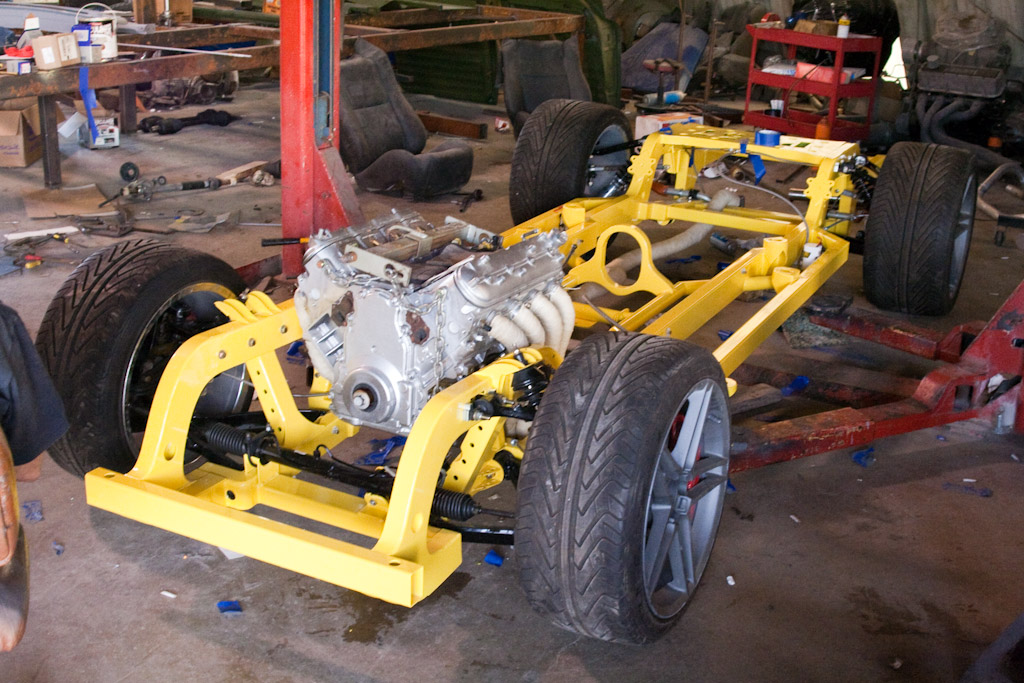 Back onto the jig table for driveline angling, exhaust and sheet metal work.