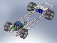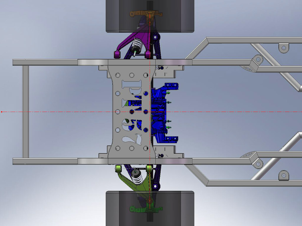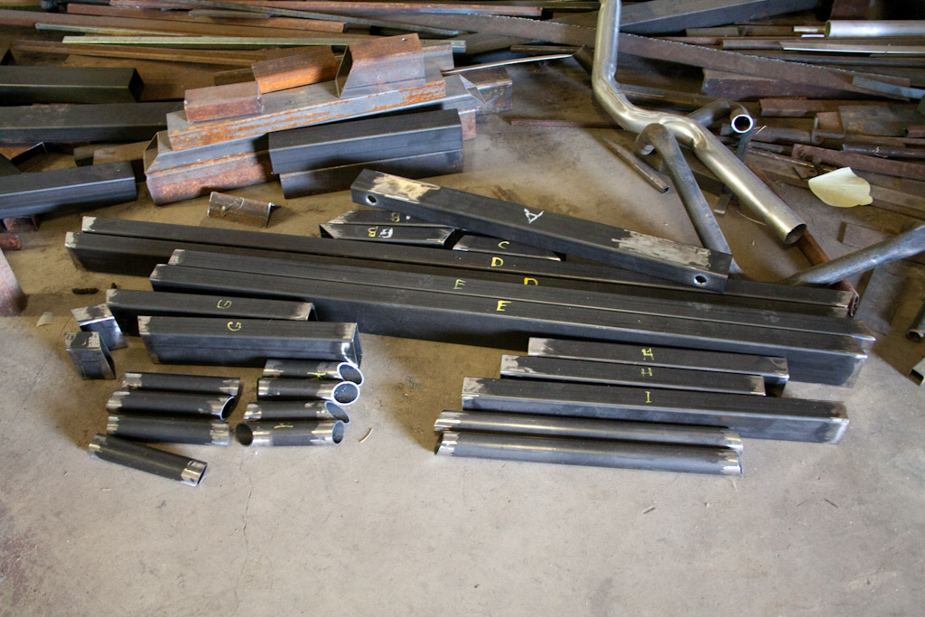 The Front batch of laser parts came in, see the erector set frame on the table. I’ve tabbed and keyed everything to make them interlocking, they’re dropping together like a kids jig saw puzzle. That means all my geometry and angles I spent all that time working out with Solidworks and suspension analyzer will be duplicated in real life in a repeatable fashion.