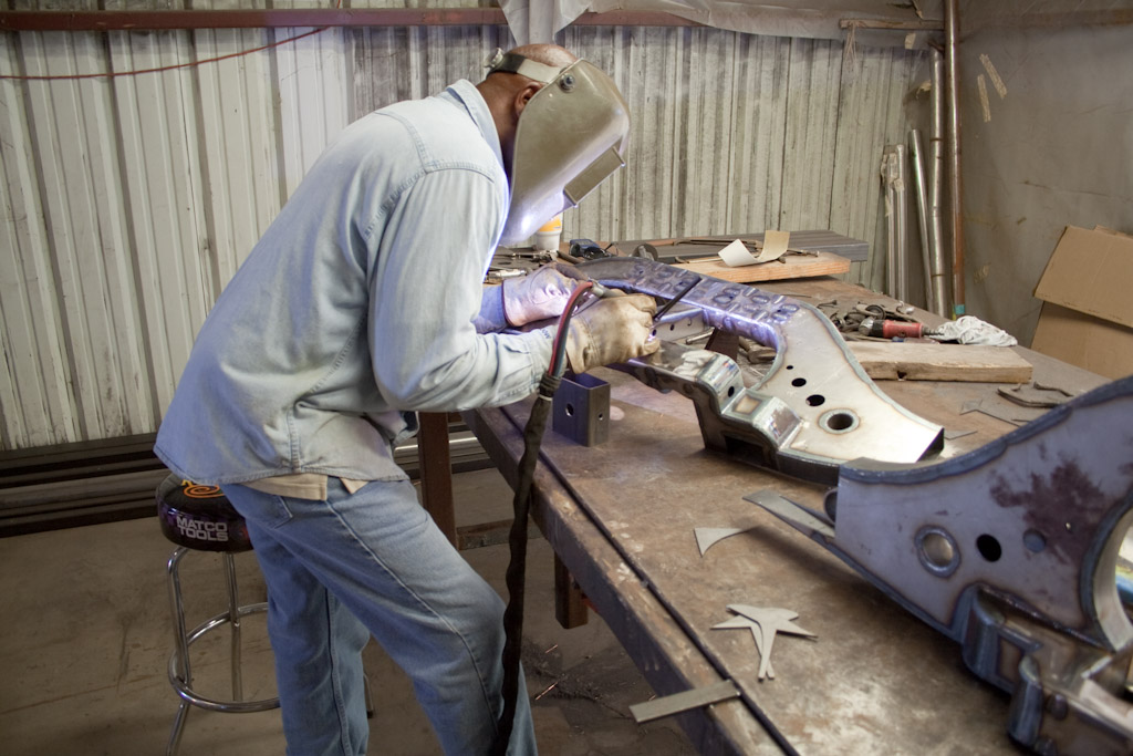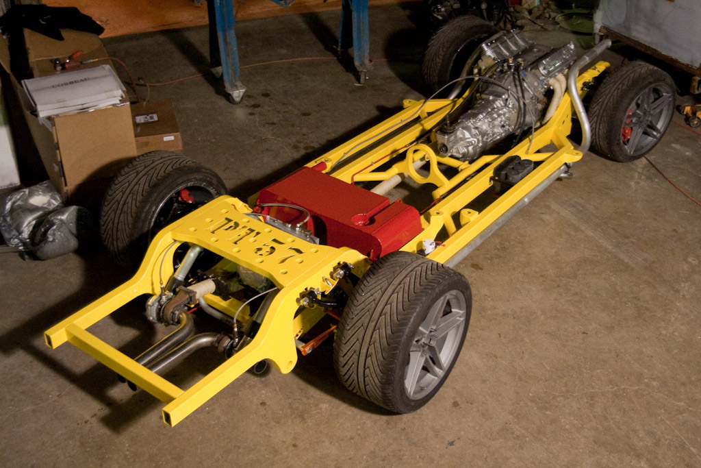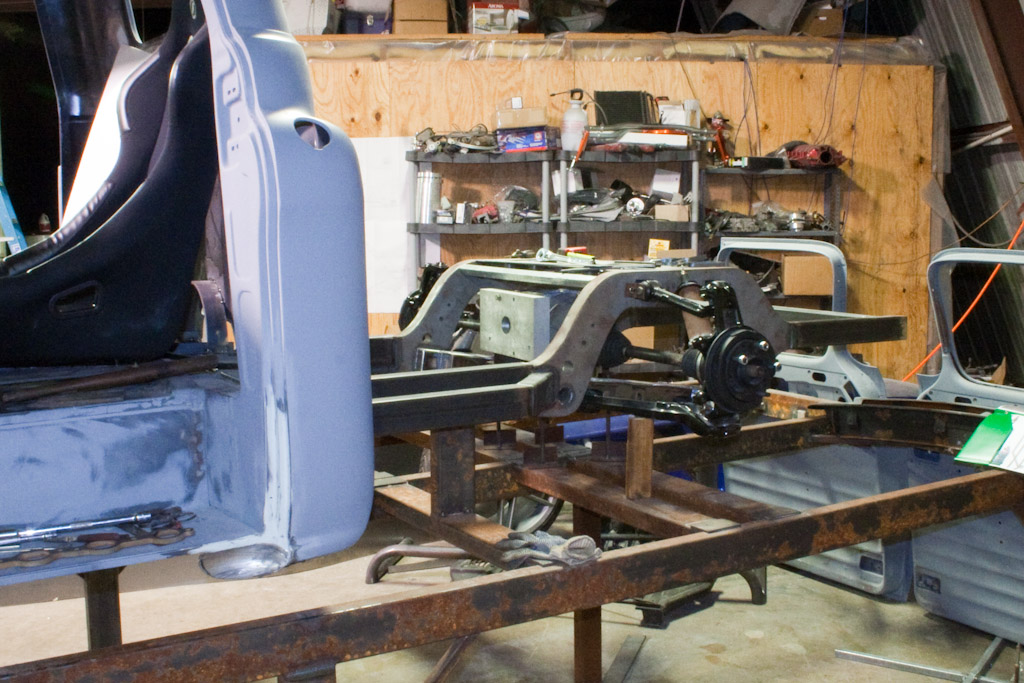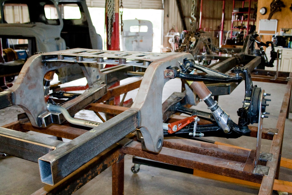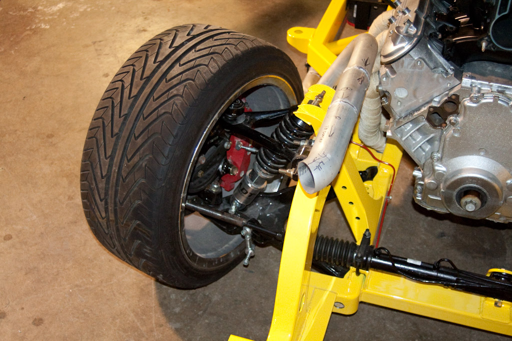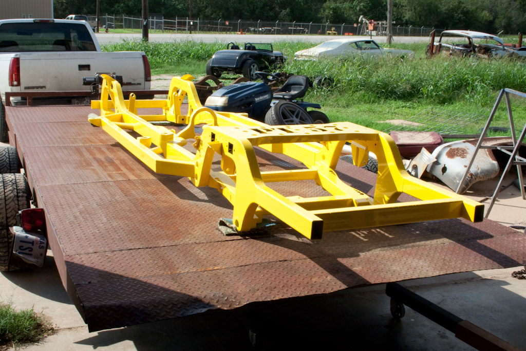 The frame just came back from the powder coat. We immediately started bolting on the suspension.