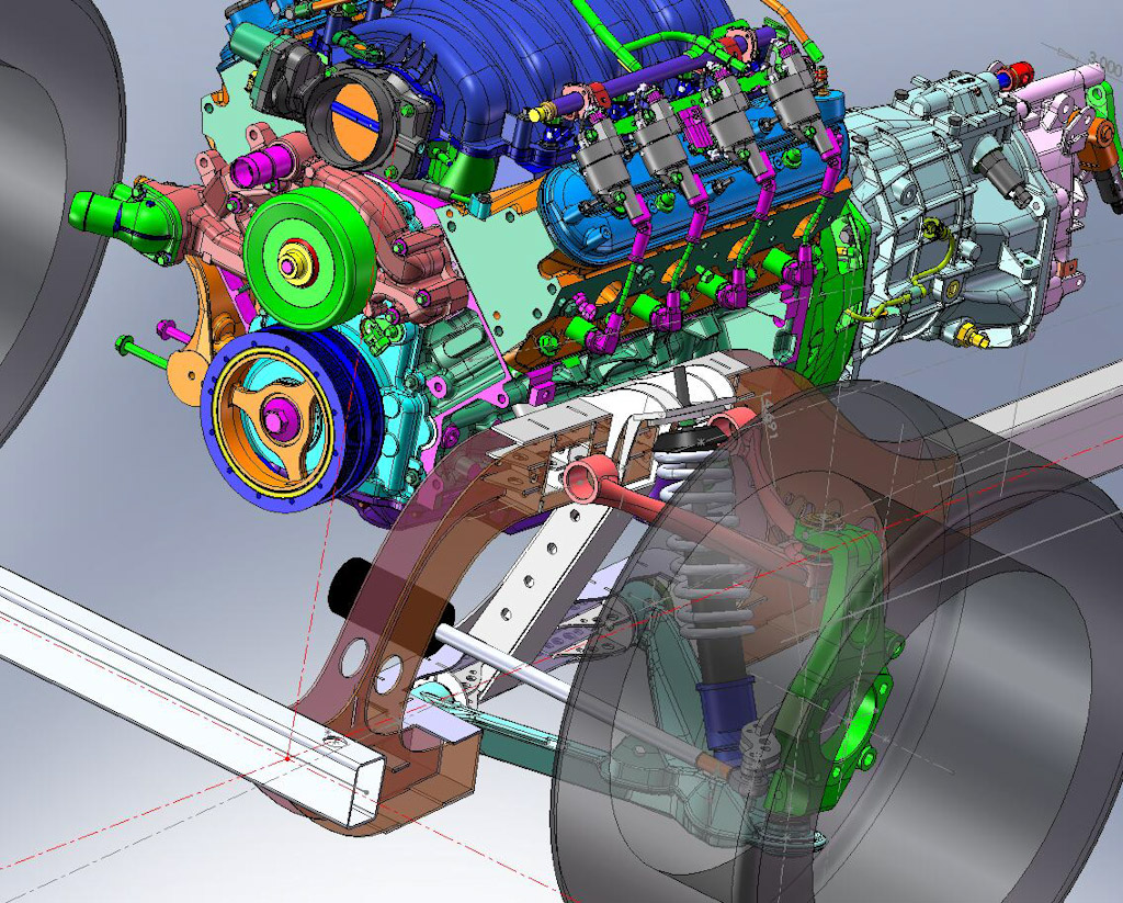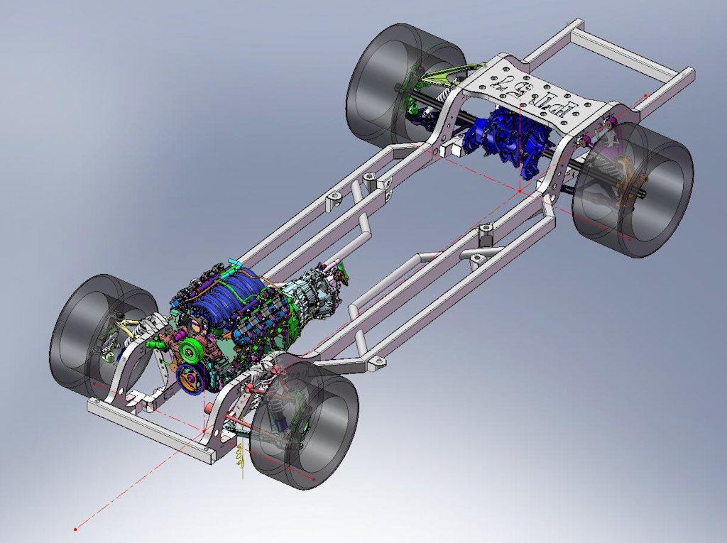 Quick update, frame quarters are almost done, the main section of the frame is knocked out on the computer, cut up waiting the quarters and the transmission is a little hung up due to some national back orders with T56 parts. Take a look at the photos, I’m going back to the work.
