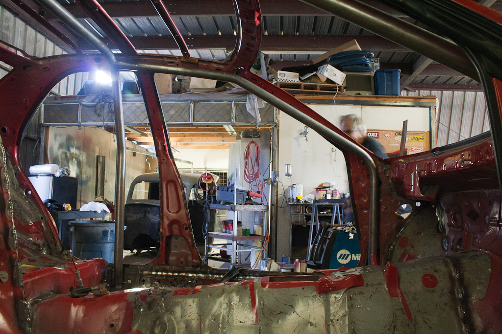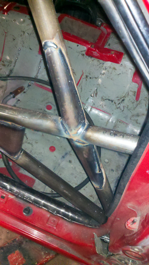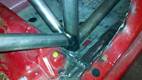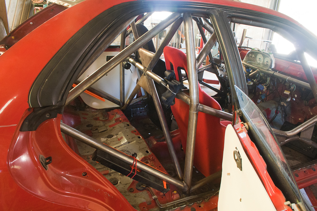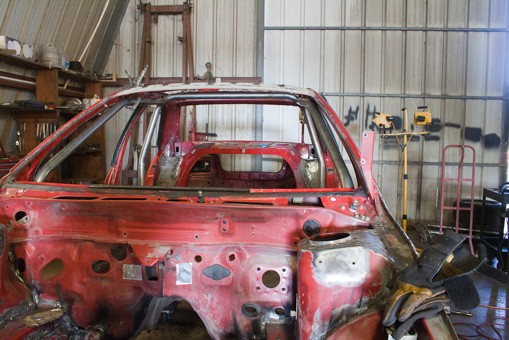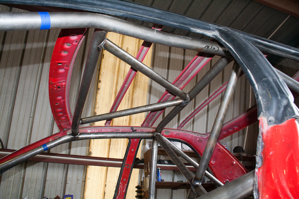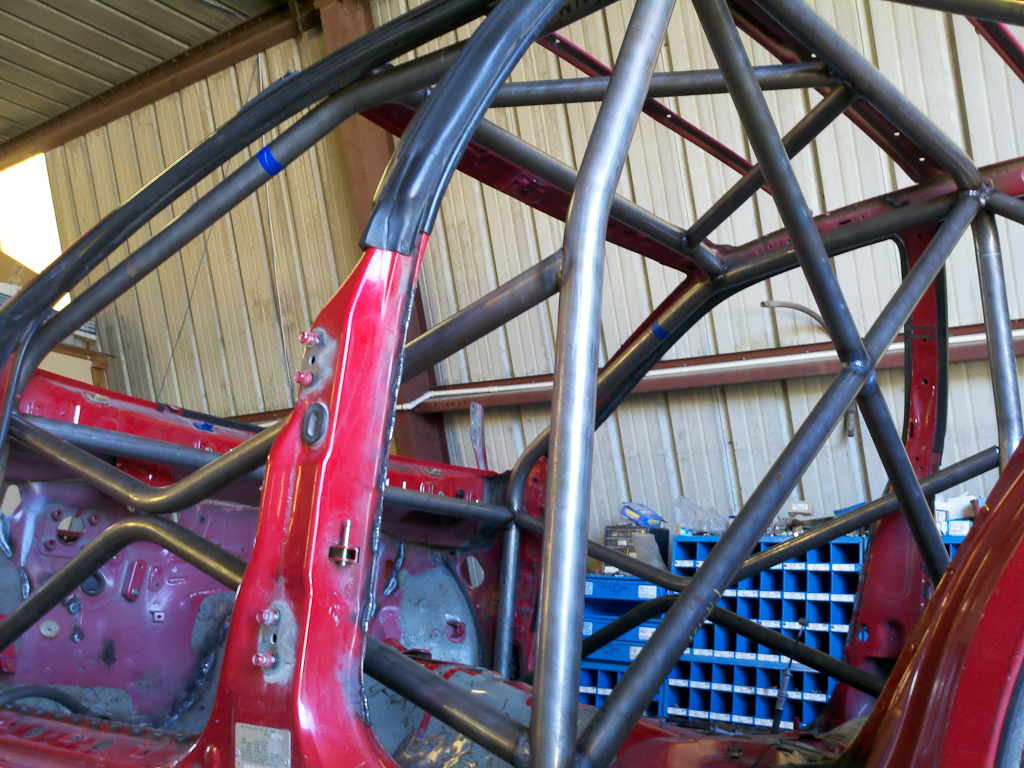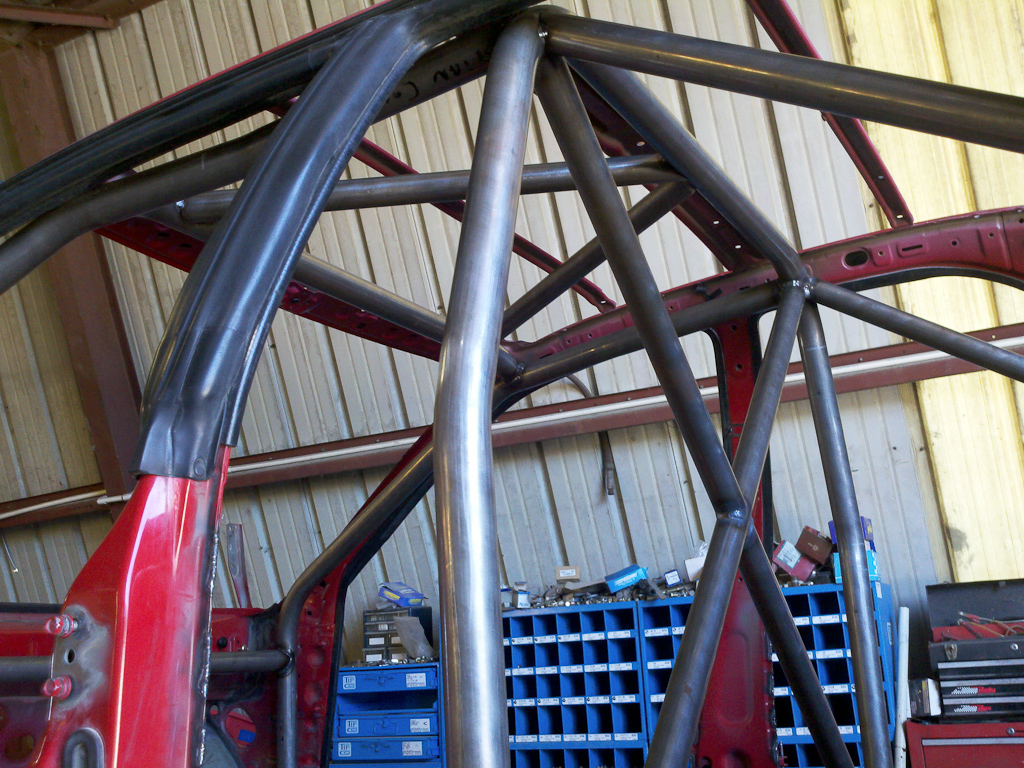 Labor, Material and Pricing The customer supplied this 1995 Subaru Impreza 4 door Sedan fully stripped of the doors, trunk, front clip, dash, electrical, drive train, fuel lines, brake line and removed the roof skin. The suspension was left for mobility purposes. The shop with the help of the owned ground out the seams and prepared the body for seam welding. Hot Rod Jim’s designed the roll cage with measurements from the body, fabricated and installed the roll cage. The cage is made from DOM 1020 and MIG welded with reinforcement plates installed on the upper strut towers front and rear to take the abuse of the jumps associated with Rally and the owners affinity to take every crest WOT. If the owner did not supply her own labor for cleaning the seams for welding (Brianne works part time for Hot Rod Jim’s) this cage and work would cost $5,000.00. If you’re building a Rally car requiring the FIA cage expect to be close to the same price. |