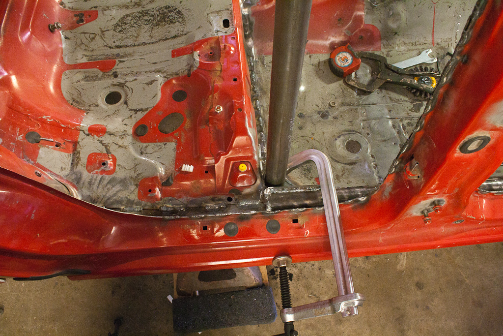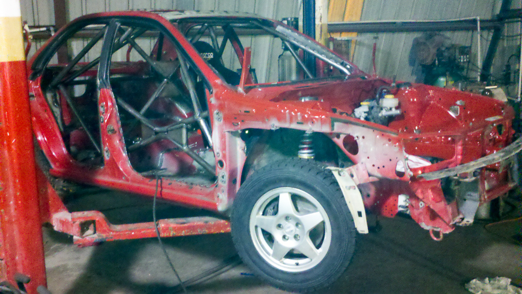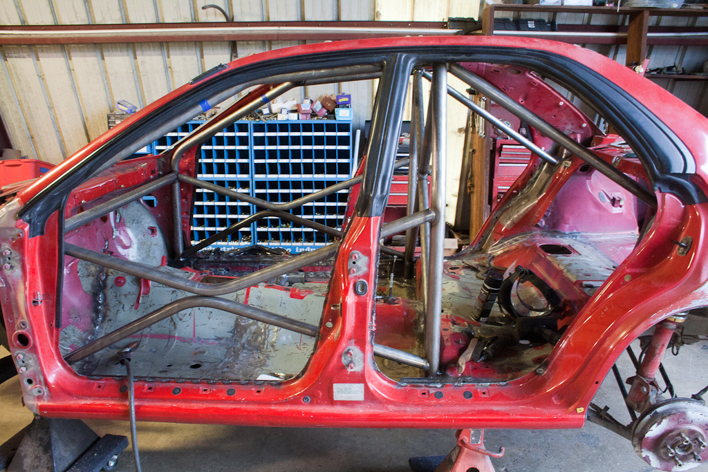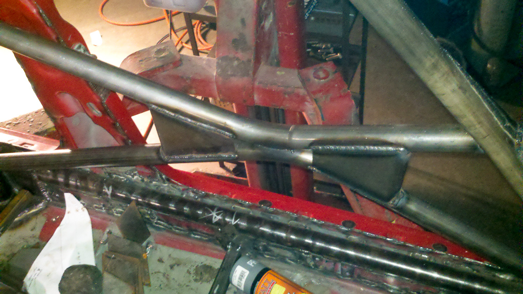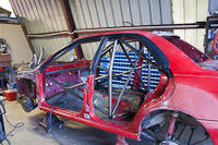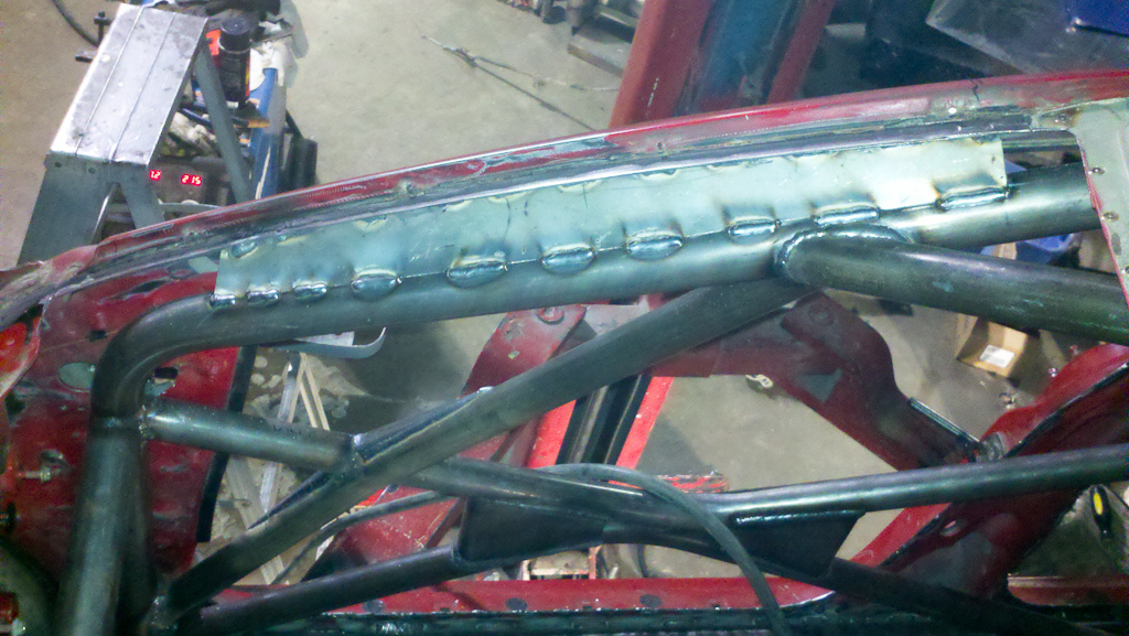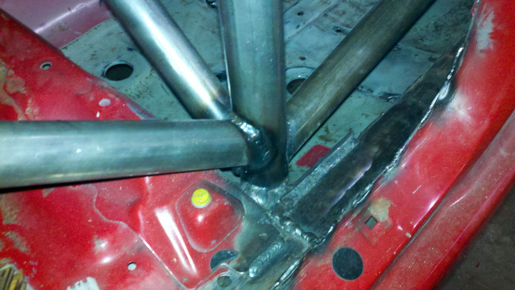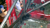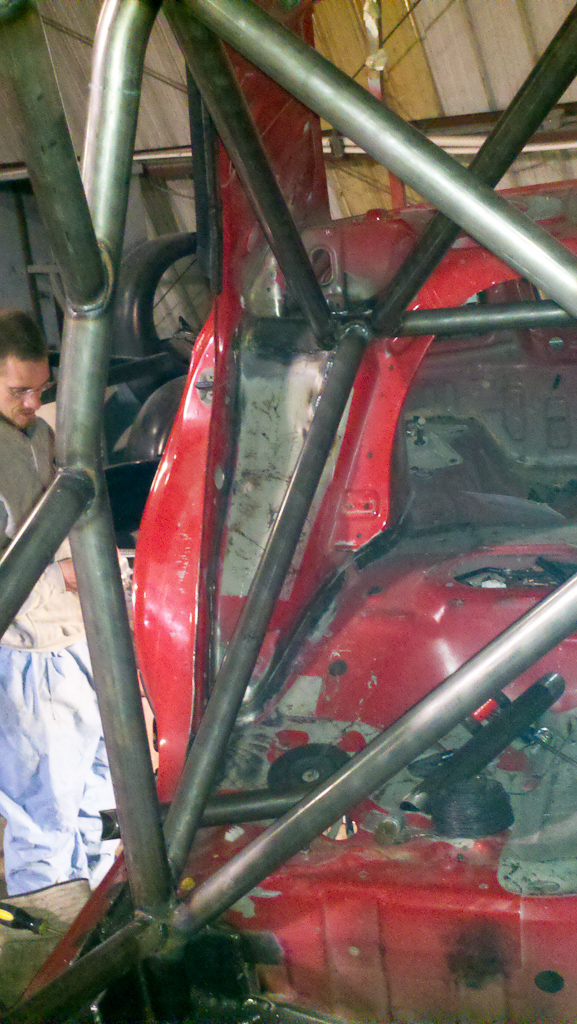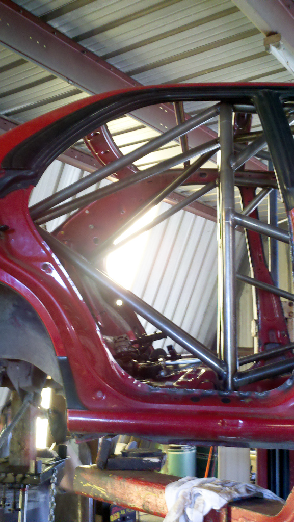 Labor, Material and Pricing The customer supplied this 1995 Subaru Impreza 4 door Sedan fully stripped of the doors, trunk, front clip, dash, electrical, drive train, fuel lines, brake line and removed the roof skin. The suspension was left for mobility purposes. The shop with the help of the owned ground out the seams and prepared the body for seam welding. Hot Rod Jim’s designed the roll cage with measurements from the body, fabricated and installed the roll cage. The cage is made from DOM 1020 and MIG welded with reinforcement plates installed on the upper strut towers front and rear to take the abuse of the jumps associated with Rally and the owners affinity to take every crest WOT. If the owner did not supply her own labor for cleaning the seams for welding (Brianne works part time for Hot Rod Jim’s) this cage and work would cost $5,000.00. If you’re building a Rally car requiring the FIA cage expect to be close to the same price. |